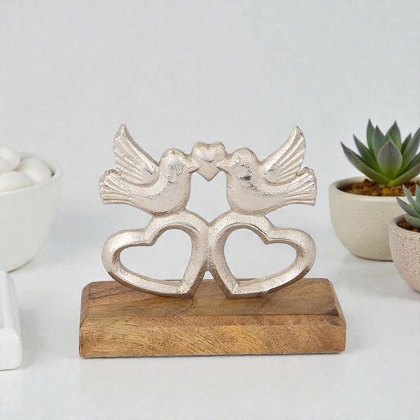 Ασημί Πουλιά Μεταλλικά σε Ξύλινη Βάση 15x5x13cm | 752-11604 – Minimal Διακοσμητικό Φύσης
