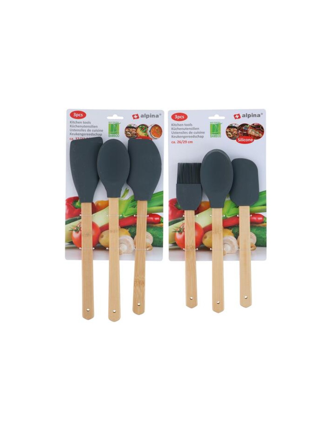 Κουτάλες bamboo/σιλικόνης 3τμχ Η33cm 03.23861