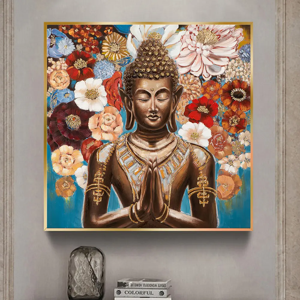 Πίνακας “Budha ” σε καμβά με ξύλινη χρυσή κορνίζα 50χ3,5×50 SD-515