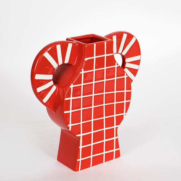 ΒΑΖΟ ΚΕΡΑΜΙΚΟ ΚΟΚΚΙΝΟ ΜΕ ΛΕΥΚΕΣ ΓΡΑΜΜΕΣ & ΧΕΡΟΥΛΙΑ 37.5x8x35.5cm | 752-20214 | ESTHETI home
