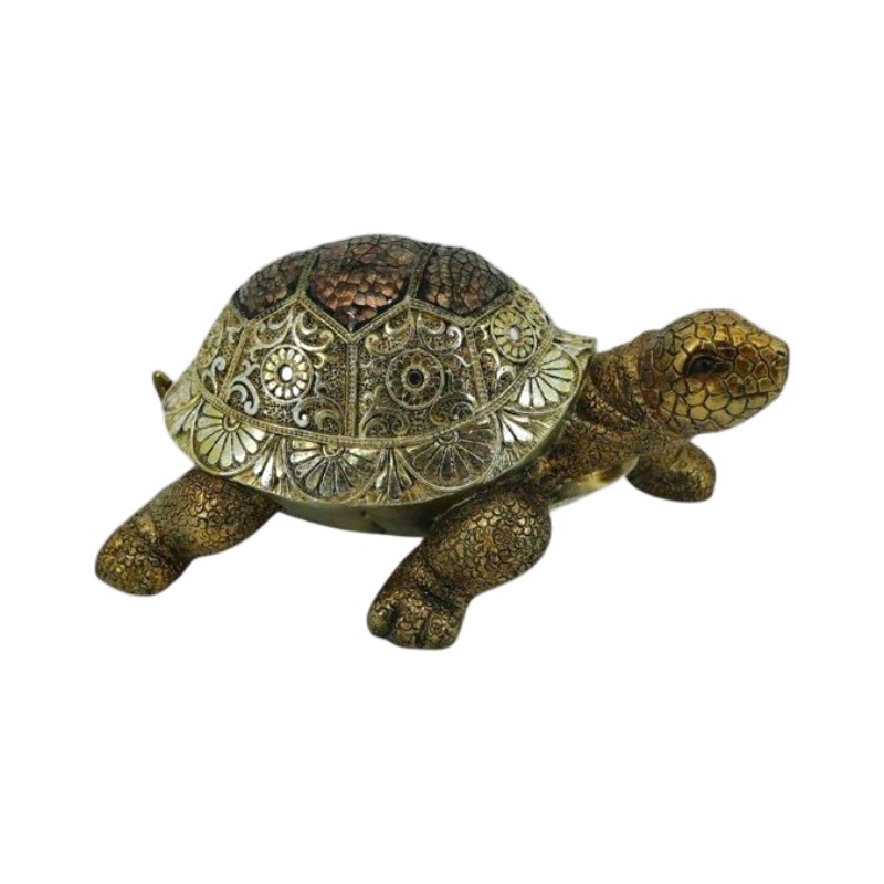 Εμπλουτίστε τη διακόσμησή σας με ένα αντικείμενο που ξεχωρίζει για την αριστοκρατική του εμφάνιση και τον ιδιαίτερο χαρακτήρα του. Η χρυσή χελώνα, σύμβολο μακροζωίας και προστασίας, διαθέτει λεπτομερή ανάγλυφη επεξεργασία στο καβούκι της, προσφέροντας ένα μοναδικό οπτικό αποτέλεσμα που ταιριάζει ιδανικά σε κάθε σύγχρονο καθιστικό ή γραφείο, αποκλειστικά από το boxin.gr.