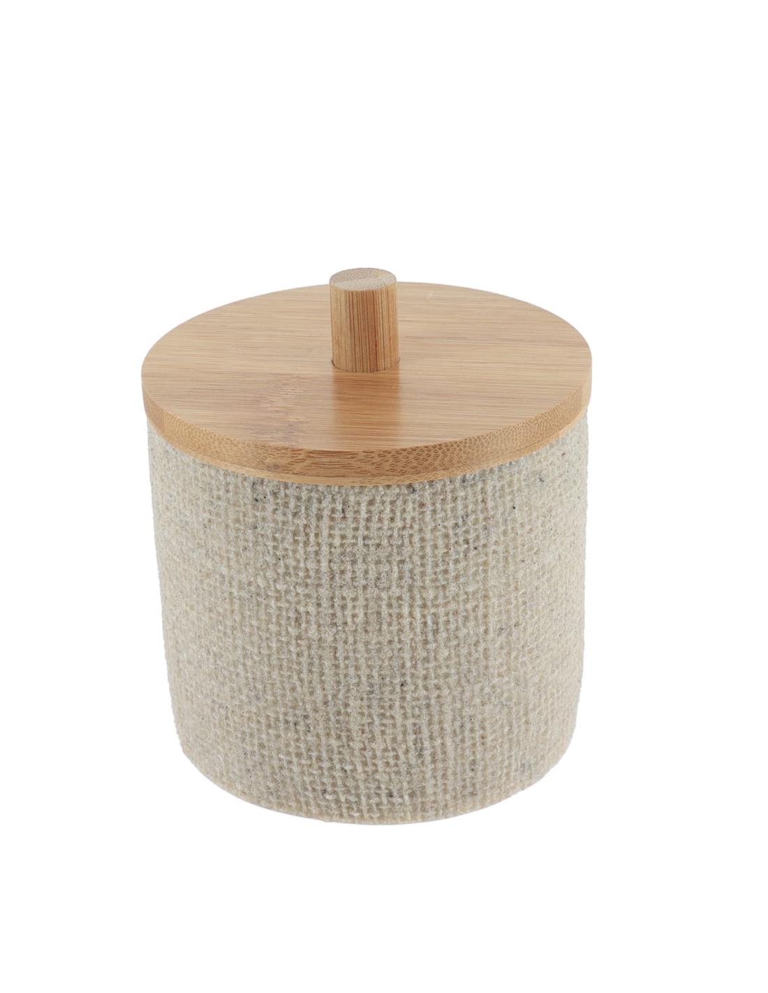 Δοχείο polyresin εκρού σαγρέ με καπάκι bamboo