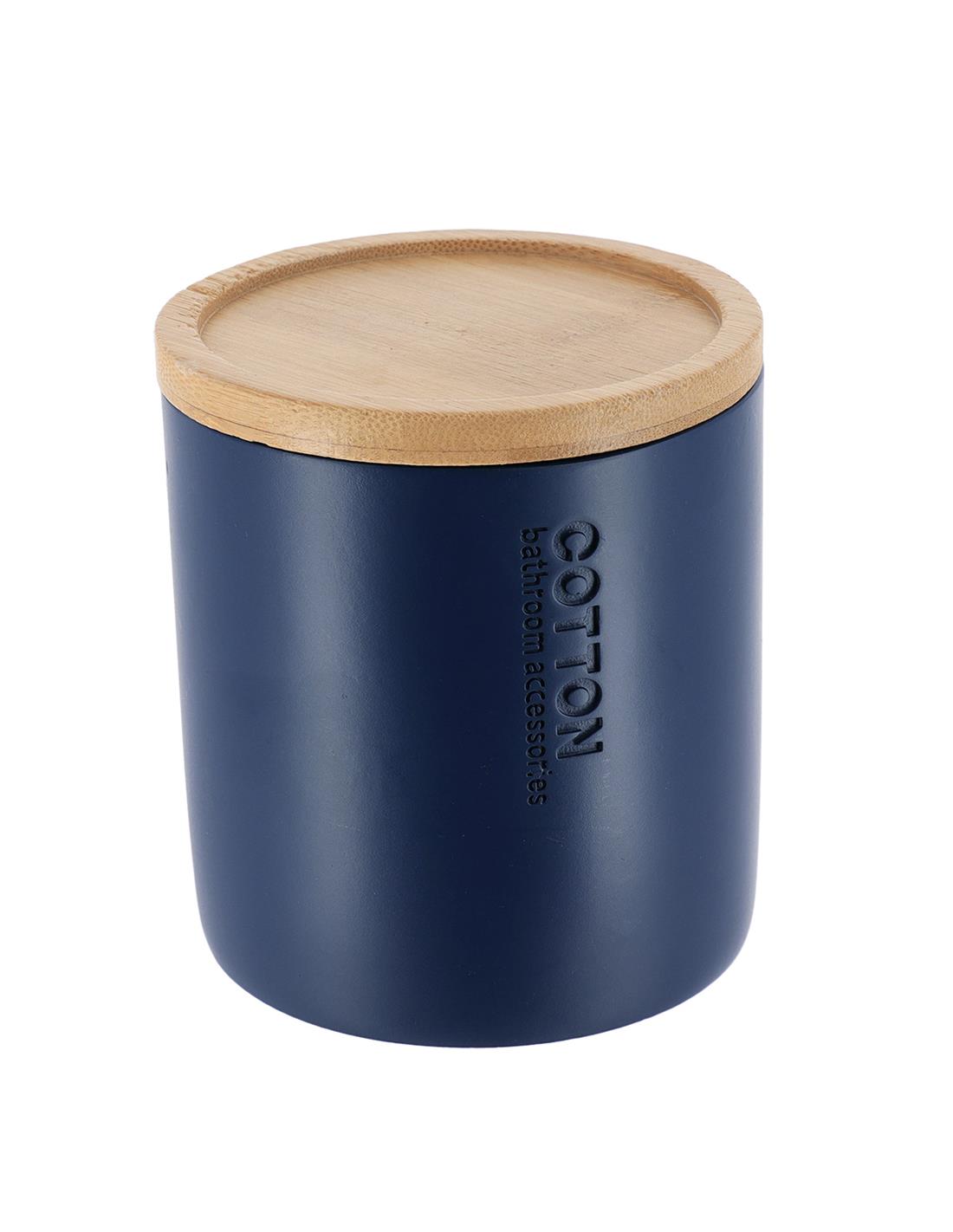 Δοχείο polyresin μπλε με καπάκι bamboo