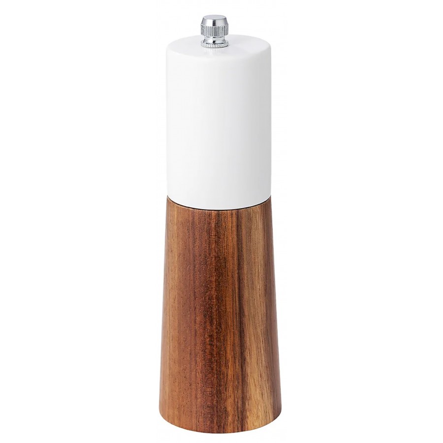 Επιτραπέζιος ξύλινο μύλος για αλάτι/ πιπέρι σε φυσικό και λευκό χρώμα. Διάσταση: 15cm Χωρητικότητα: 100gr SD-907B