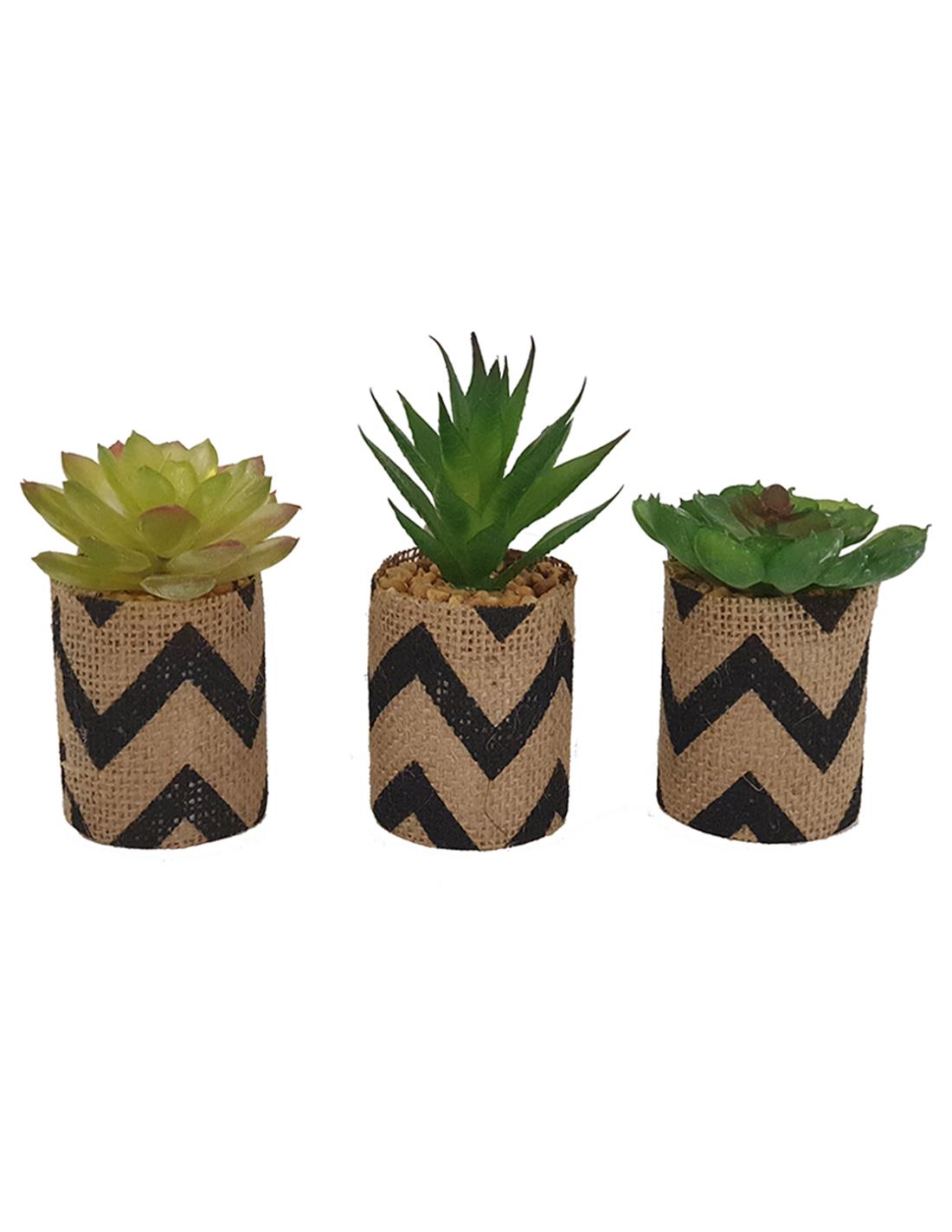 Κάκτος σε κασπώ ριγέ λινάτσας 9-12εκ. 3σχ.