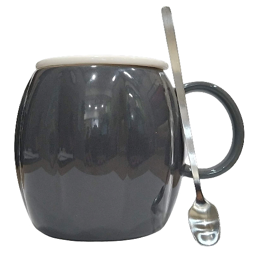 Κεραμική κούπα με καπάκι και κουταλάκι σε dark γκρι χρώμα “Pumpkin” 7,5X10εκ. 440ml KL-8989D