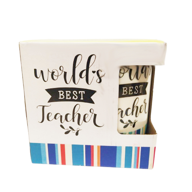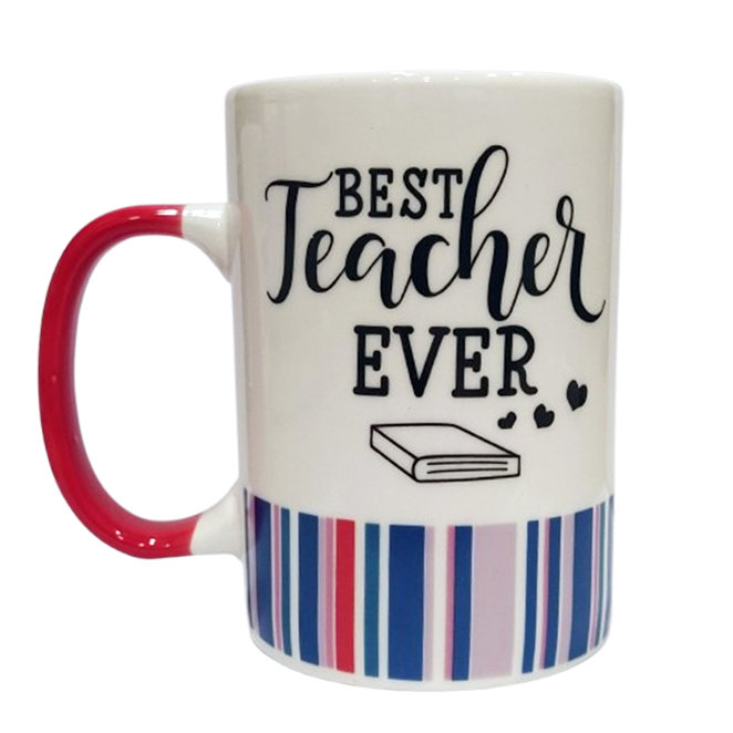 Κεραμική κούπα ” Best Teacher ever ” κόκκινο χερούλι και πολυτελές κουτί δώρου 360ml Etoile LM-661B