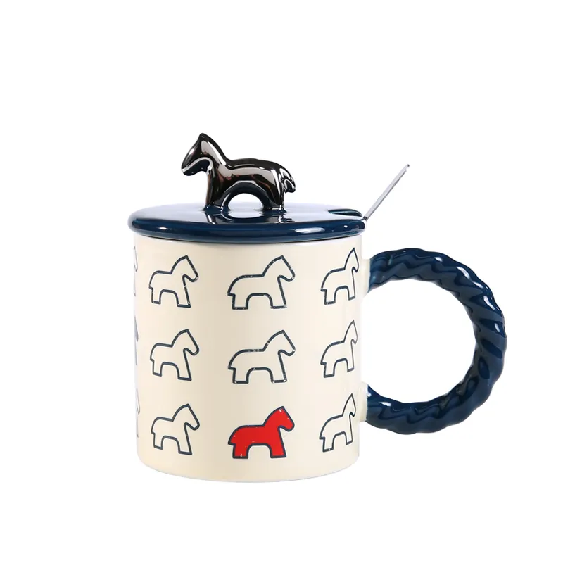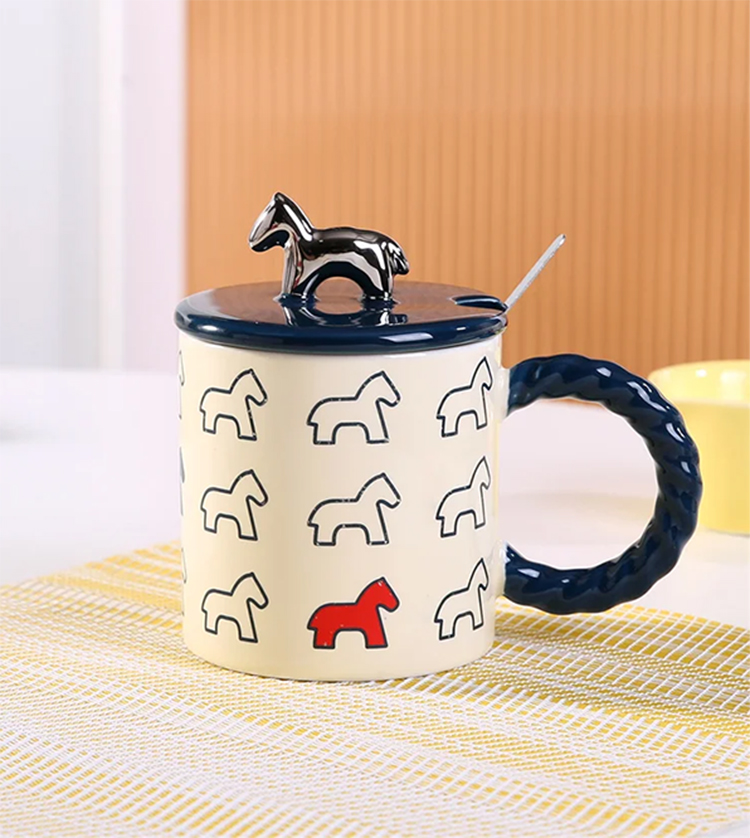 Κεραμική κούπα ” Little Horse ” με μοναδικό καπάκι και inox πρωτότυπο κουταλάκι 385ml Etoile LM-647A