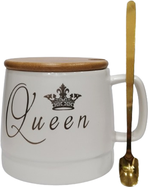 Κεραμική κούπα “Queen” σε λευκό χρώμα με μπαμπού καπάκι και κουταλάκι 12Χ9.5Χ9.5 360ml LM-216B