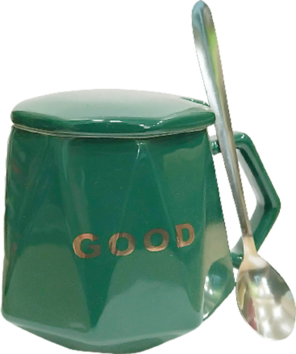 Κεραμική κoύπα “GOOD” με καπάκι και κουταλάκι σε πράσινο χρώμα PT-831GO