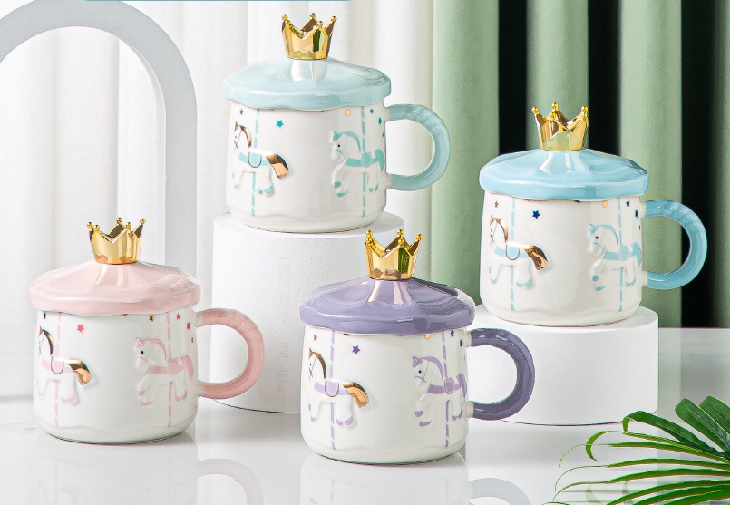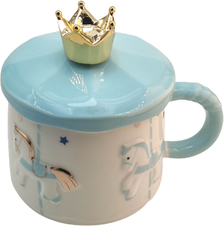 Κεραμική Koύπα με καπάκι και αναδευτήρα (στέμμα) Carousel σε γαλάζιο χρώμα TK-349LBL