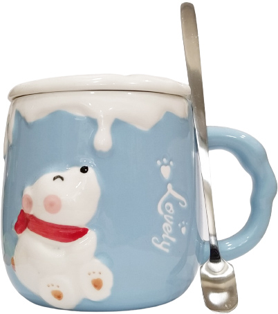 Κεραμική Koύπα με καπάκι και κουταλάκι Pollar Bear σε γαλάζιο χρώμα 10Χ8,5 PT-814LBL
