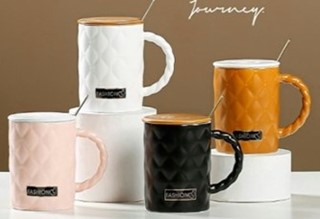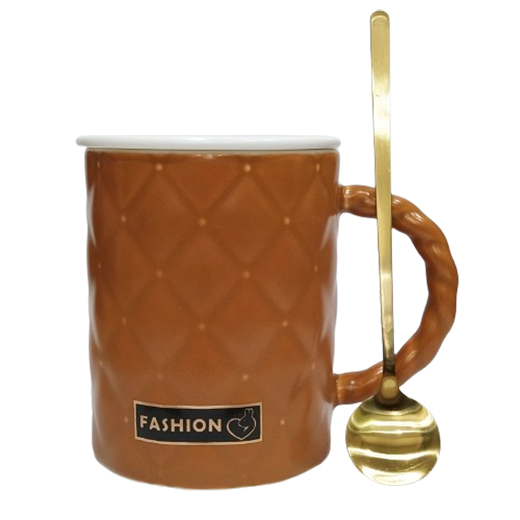 Κεραμική Koύπα “Fashion” με καπάκι και κουταλάκι σε Μουσταρδί χρώμα 350ml Etoile DF-448A