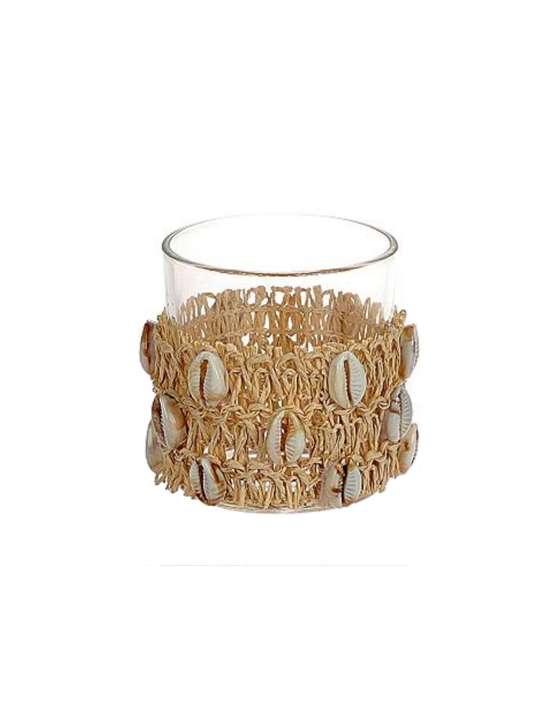 Κηροπήγιο γυάλινο με δίχτυ&κοχύλια Φ7,3Η8cm