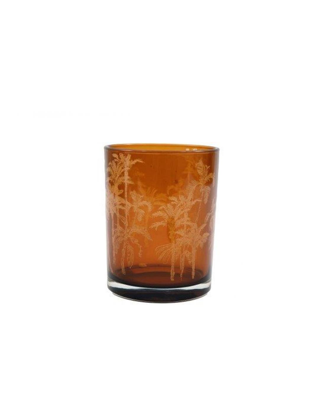 Κηροπήγιο γυαλ.καφέ φοίνικες 10×12,5cm