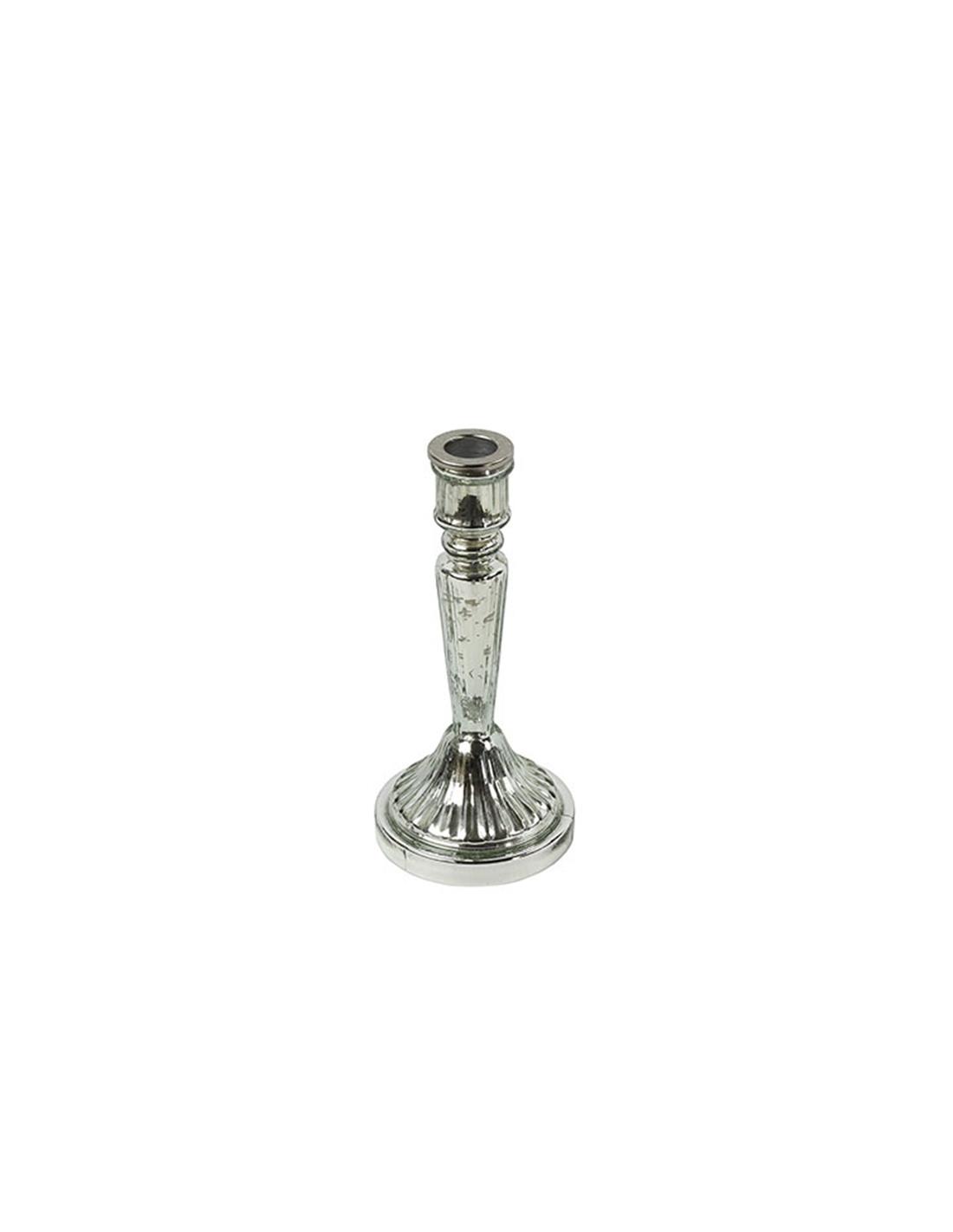 Κηροπήγιο μονό γυαλ.ασημί 9,5Χ21