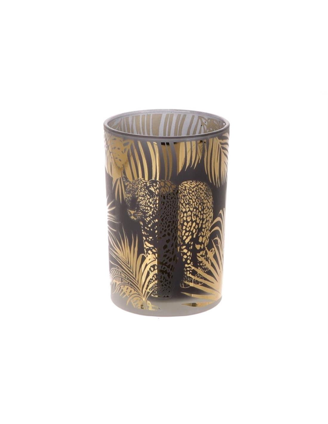 Κηροπήγιο ποτήρι γυαλ.χρυσή λεοπάρδαλη Φ12 Η18cm