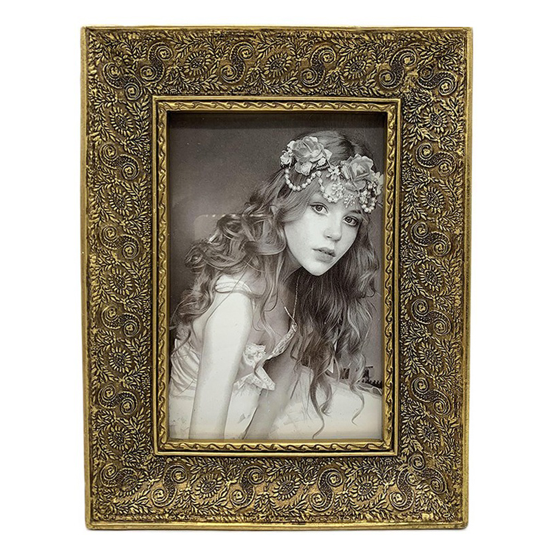 Δώστε λάμψη και κομψότητα στις αγαπημένες σας στιγμές με την κορνίζα Polyresin σε χρυσό ανάγλυφο σχέδιο. Ιδανική για φωτογραφίες 10×15εκ., διαθέτει τόσο στήριγμα για επιτραπέζια τοποθέτηση όσο και δυνατότητα κρέμασης στον τοίχο, ώστε να προσαρμόζεται σε κάθε χώρο.