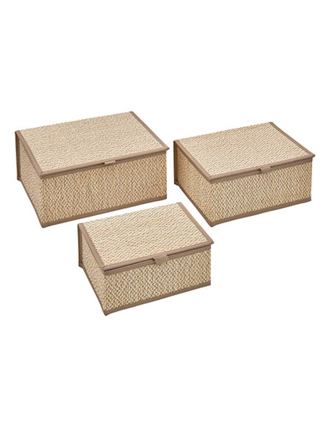 Κουτιά αποθήκευσης bamboo λευκό ύφασμα S/3 33,5×25,5x15cm