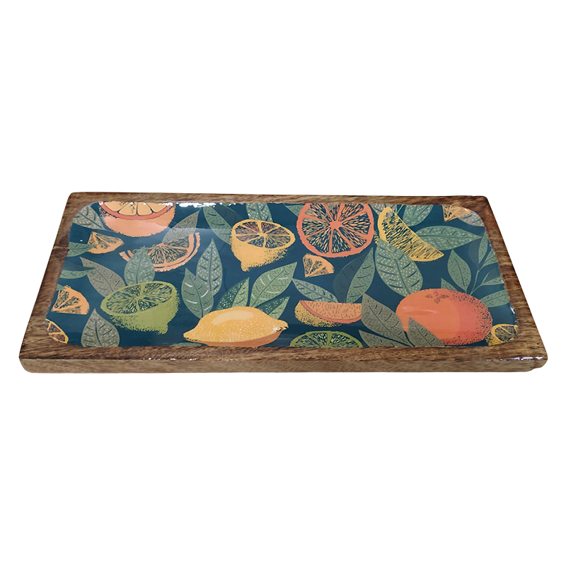 Η Ξύλινη Πιατέλα “Citrus Dark” είναι φτιαγμένη από φυσικό ξύλο mango και διαθέτει εσωτερική επισμάλτωση (enamel) με ιδιαίτερο μοτίβο εσπεριδοειδών σε πιο σκούρες αποχρώσεις. Με διαστάσεις 40×19εκ., συνδυάζει την ανθεκτικότητα του μάνγκο με τον κομψό σχεδιασμό, καθιστώντας την ιδανική τόσο για σερβίρισμα (φρούτα, τυριά, αλλαντικά, γλυκίσματα) όσο και για διακόσμηση.