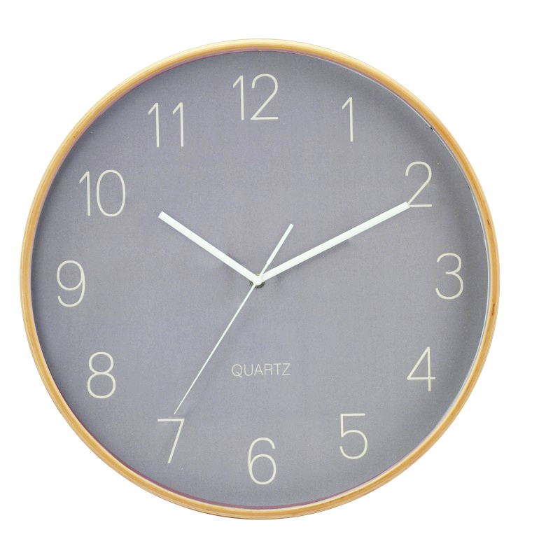 Ανανεώστε τον χώρο σας με το ρολόι τοίχου σε γκρι χρώμα & πλαίσιο με όψη ξύλου. Minimal design, λευκοί αριθμοί & μηχανισμός Quartz. Βρείτε το στο boxin.gr!