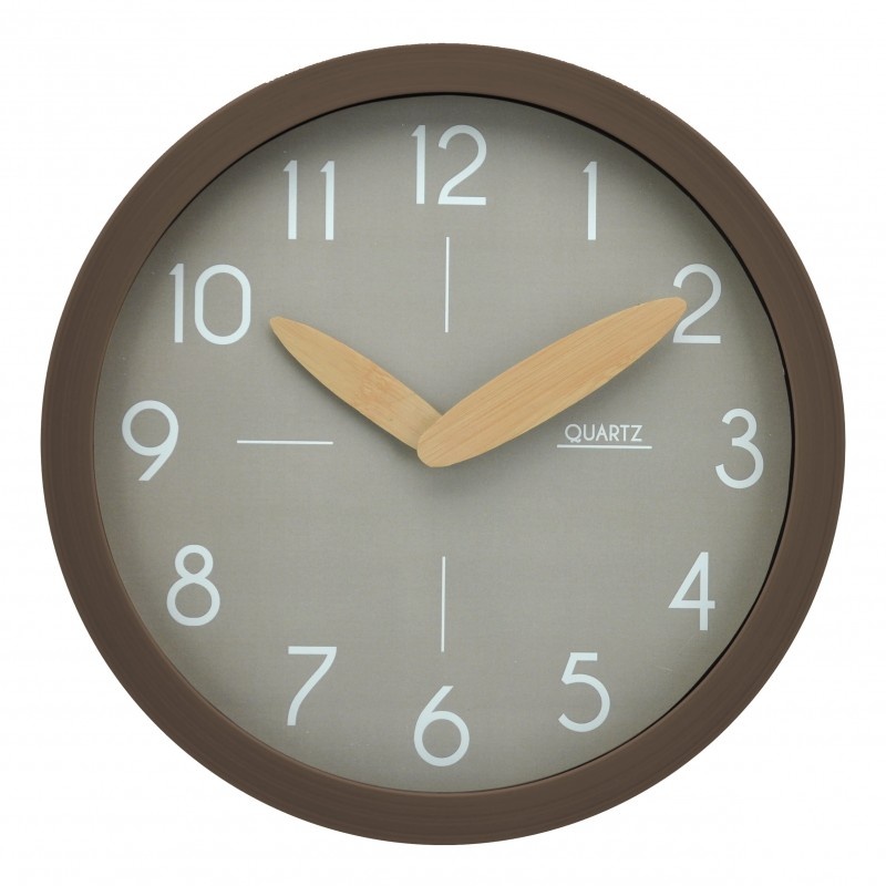 Ρολόι Τοίχου Πλαστικό Γκρι με Καφέ Πλαίσιο & Ξύλινους Δείκτες 30cm | Modern Quartz | EG9011-DARK