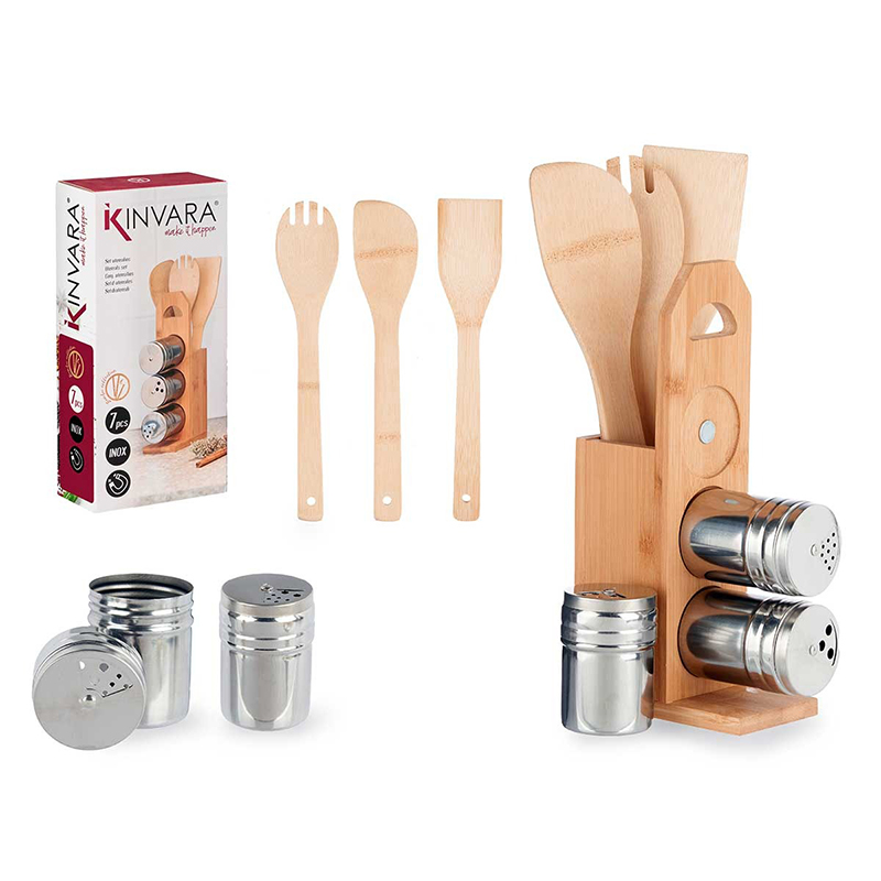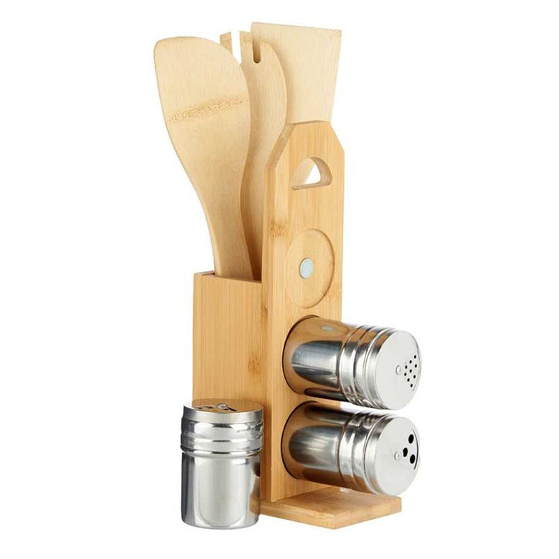 Σετ εργαλείων σε θήκη απο bamboo και 3 βάζα μπαχαρικών με μαγνητη (σετ7pcs) 15×7,5H32,5cm 029.90970