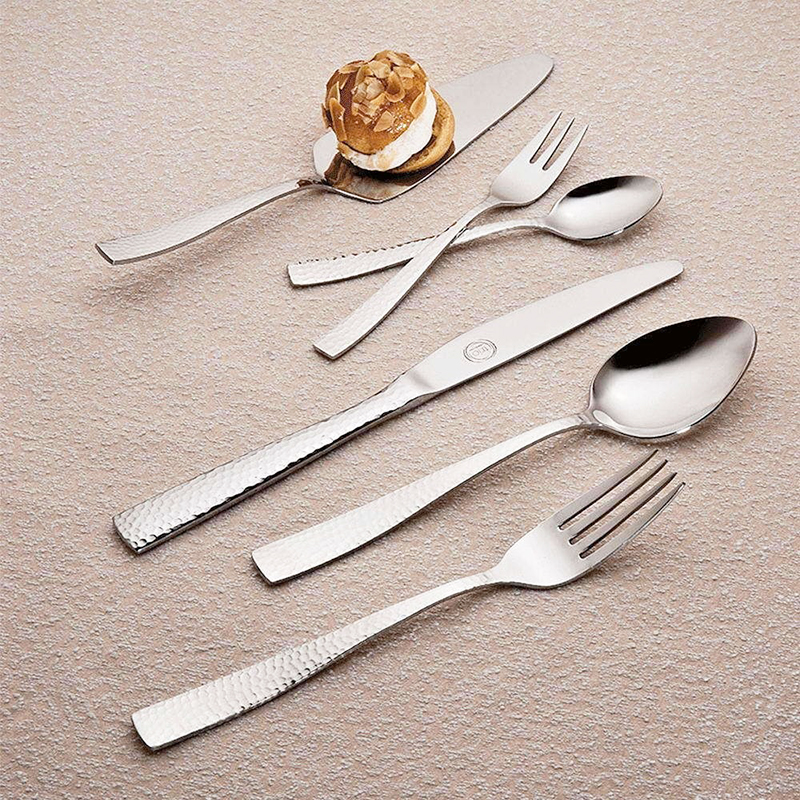 Το σετ μαχαιροπίρουνων Hammered της Cryspo Trio ξεχωρίζει για το εκλεπτυσμένο σφυρήλατο (hammered) φινίρισμά του, που χαρίζει μοναδική υφή και υψηλή αισθητική σε κάθε τραπέζι.