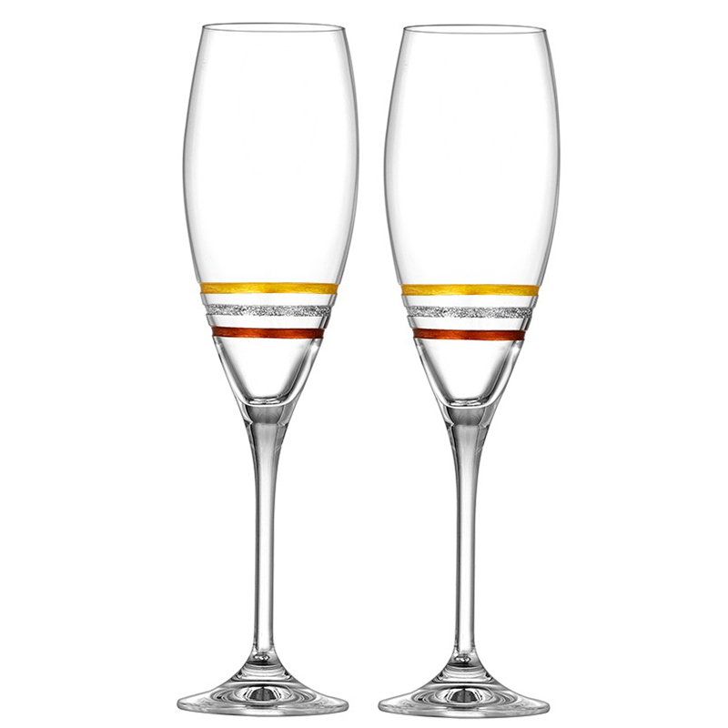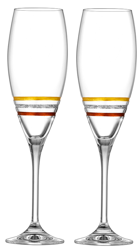 Σετ 2 Κρυστάλλινα Ποτήρια Σαμπάνιας χάραγμα με διαμάντι σε χρυσό σχέδιο “Τριχρωμία” 240ml 6Χ24 LAVG371