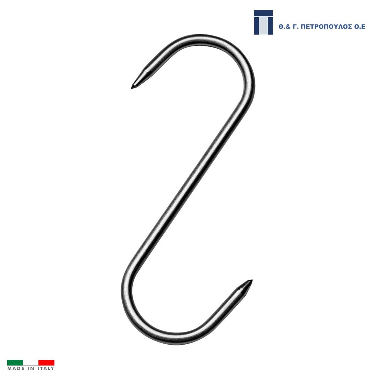 Τσιγκέλι κρεοπωλών με διπλή μύτη κατασκευασμένο στην Ιταλία από ανοξείδωτο ατσάλι AISI 430 (X6Cr17)