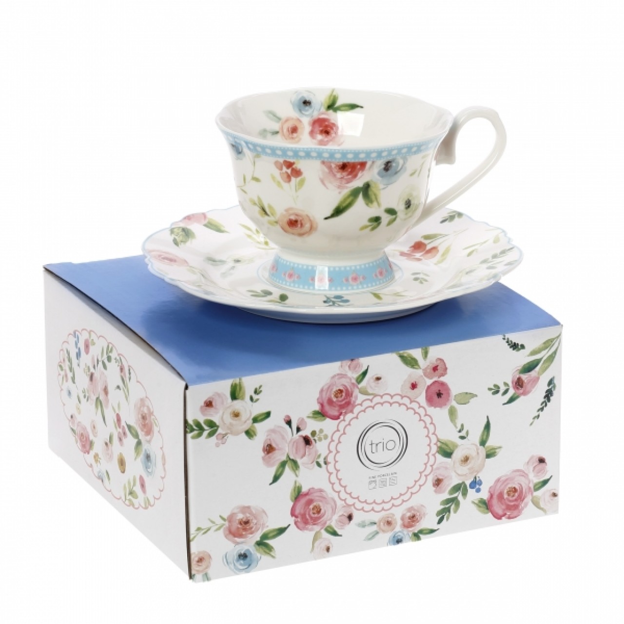 Φλιτζανάκι Καφέ “Primavera Blue”με πιάτο σε Πορσελάνη Α+ , 100ml Cryspo Trio 28.098.17