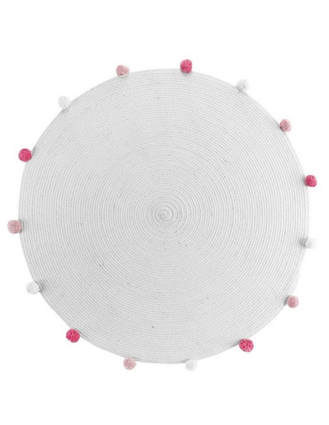 Χαλί βαμβ.με πον πον ροζ Φ90 λευκό