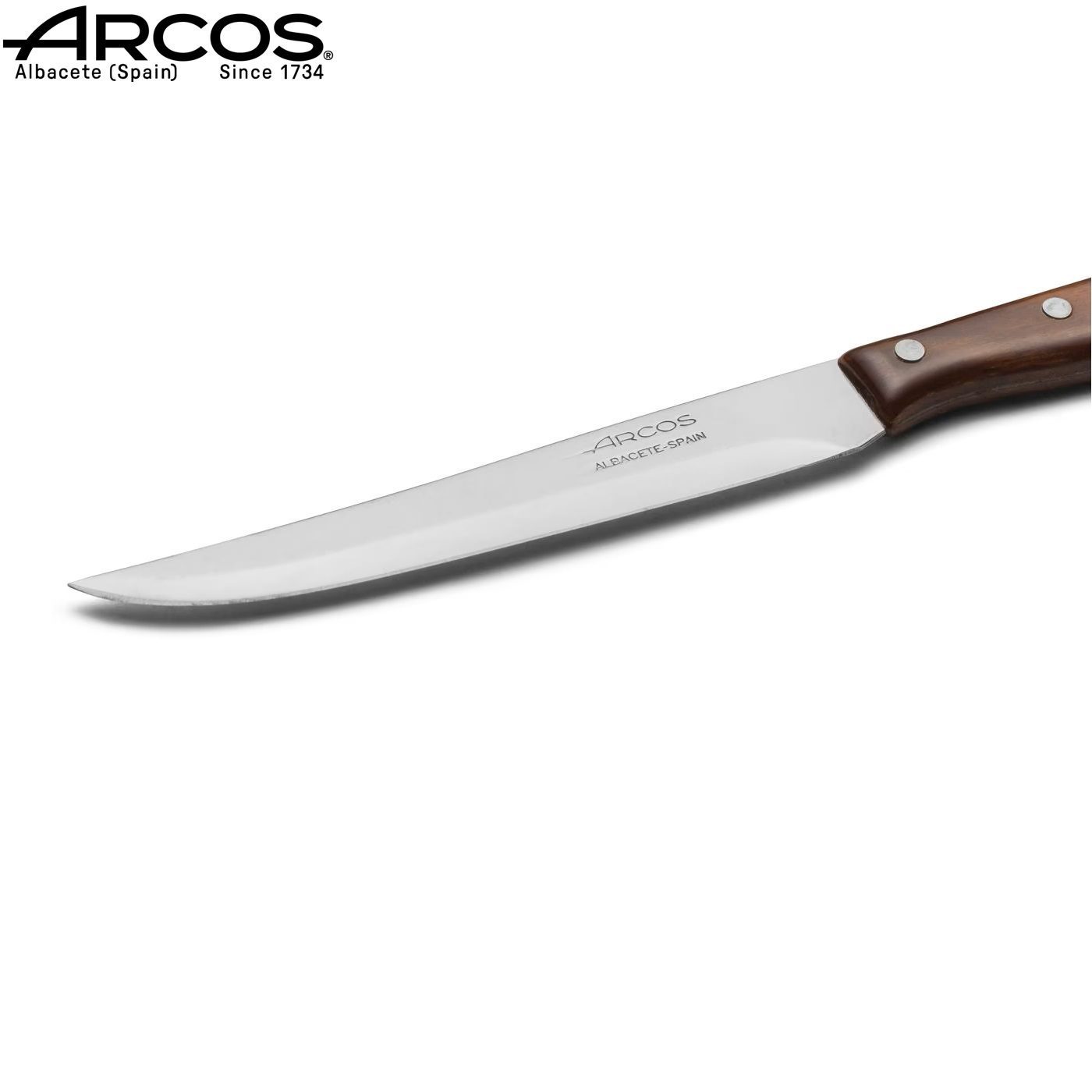 Διαθέτει λεπίδα από ανοξείδωτο ατσάλι NITRUM® ενισχυμένο με χρώμιο, ένα υλικό κατοχυρωμένο με δίπλωμα ευρεσιτεχνίας από την Arcos, που εγγυάται μεγαλύτερη σκληρότητα και αντοχή στη φθορά.