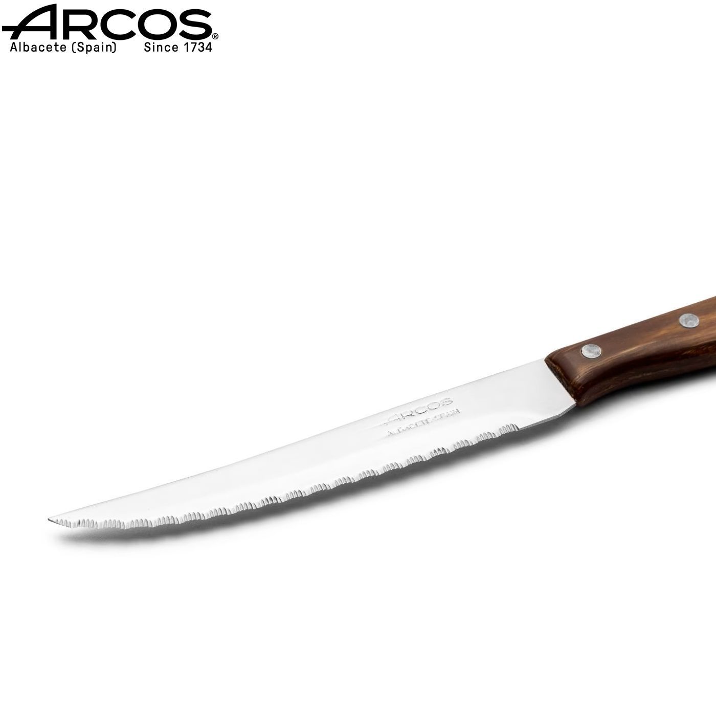 Μαχαίρι Steak με μικροδοντωτή λεπίδα, σχεδιασμένο με την ισπανική παράδοση και την εμπειρία της Arcos, αυτό το μαχαίρι θα σας προσφέρει την ιδανική, άνετη, εύκολη, ομαλή και τέλεια κοπή διαφόρων κρεάτων στο τραπέζι, καθώς και στην κοπή λαχανικών στην προετοιμασία του φαγητού.