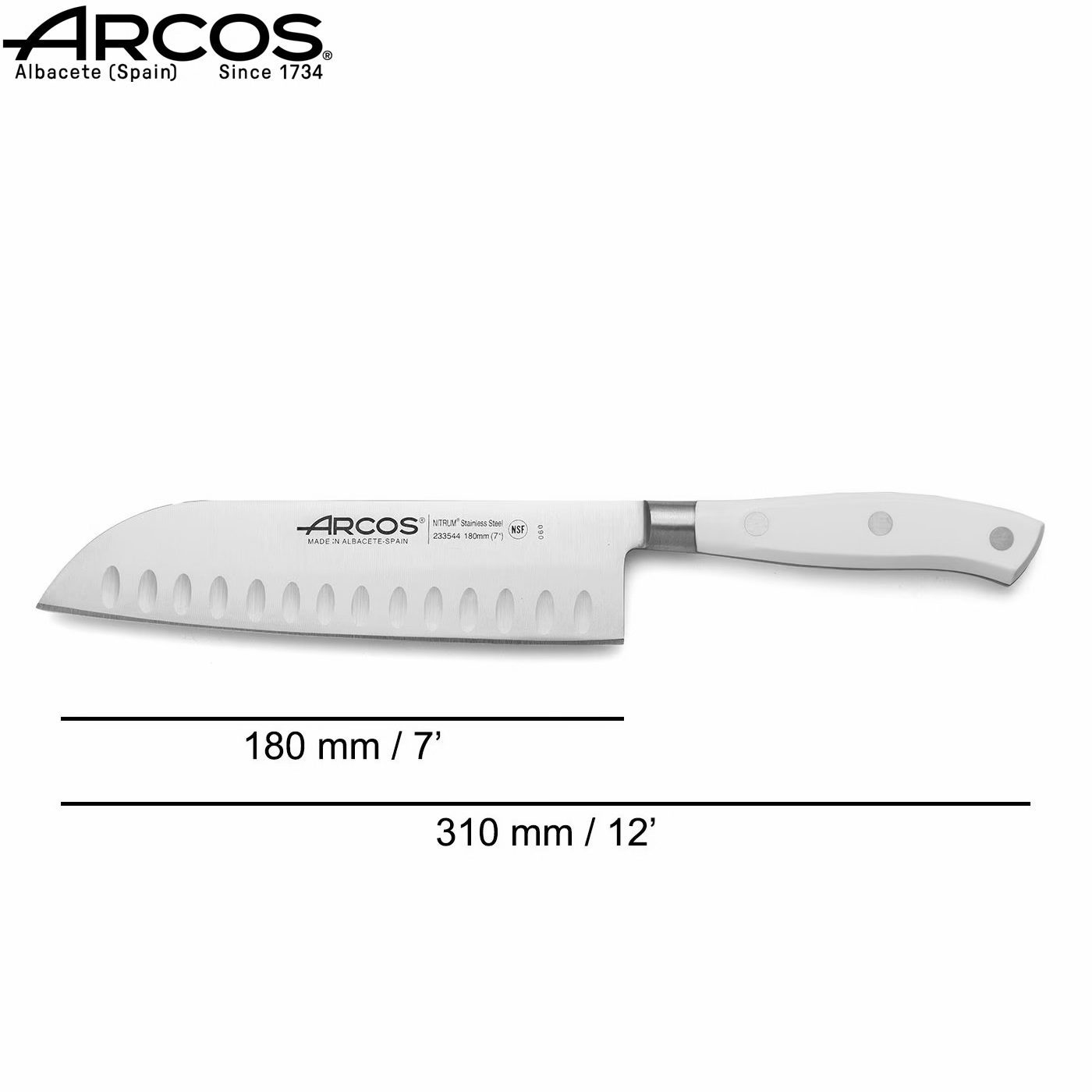 Arcos Riviera Μαχαιρι Santoku Με Αυλακια 18Εκ. Λευκη Λαβη | 059.233524