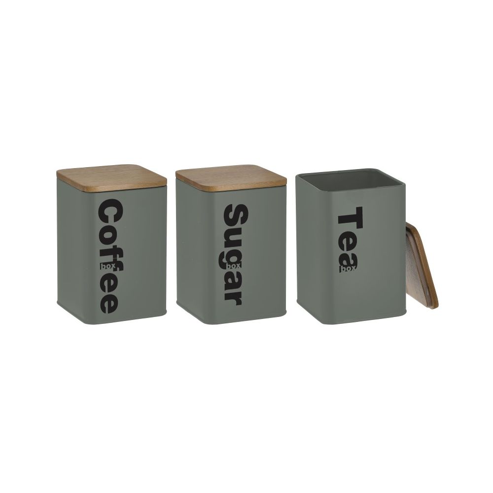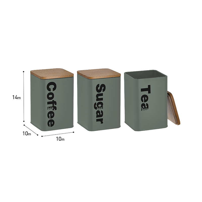 Click Κουτί Ζάχαρη / Καφέ / Τσάι με Καπάκι Μεταλλικό σε Πράσινο Χρώμα 10x10x14cm 3τμχ