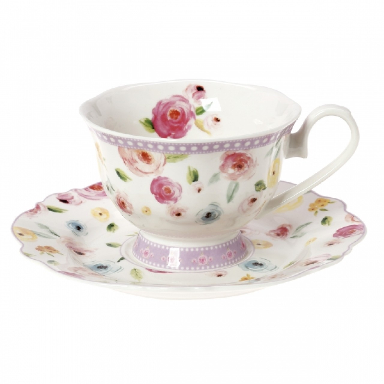 Cryspo Trio Φλιτζάνι Τσαγιού με Πιάτο Primavera Purple 200ml | 28.096.16 – Porcelain Cup & Saucer A+