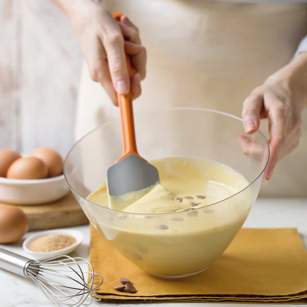 Σπάτουλα (marise) σιλικόνης έυκαμπτη με ίσια την μία πλευρά για να λειτουργεί ως ξύστρα (scraper) μαζεύοντας τυχόν υπολείμματα παρασκευών από τα τοιχώματα, κατασκευάζεται στην Ιταλία από 100% σιλικόνη Platinum, την πιο καλή και ασφαλή ποιότητα για επαφή με τρόφιμα, η μακριά εργονομική πλαστική λαβή της κάνει τις εργασίες πιο εύκολες, αντέχει σε θερμοκρασίες από -40°C έως +230°C, είναι κατάλληλη για ανάδευση ή εργασίες ζαχαροπλαστικής τόσο σε επαγγελματικές αλλά και οικιακές κουζίνες και πλένεται σε πλυντήριο.
