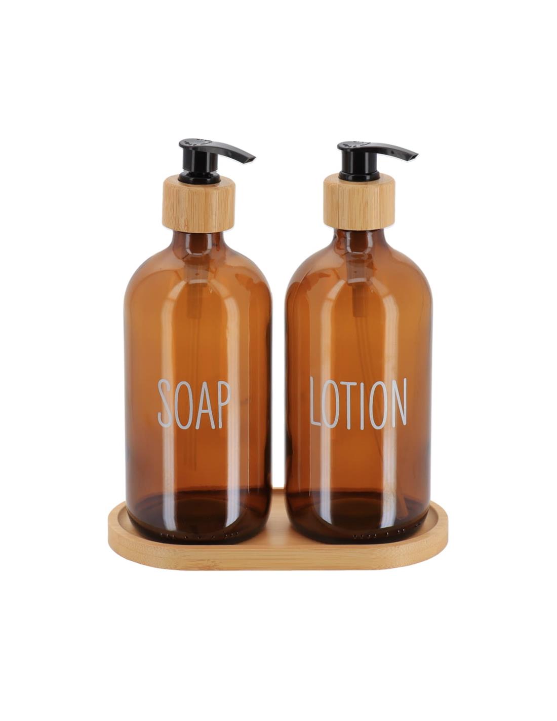 Dispenser γυάλ.set/2 σε bamboo βάση 500ml/17,5x8x21,5cm