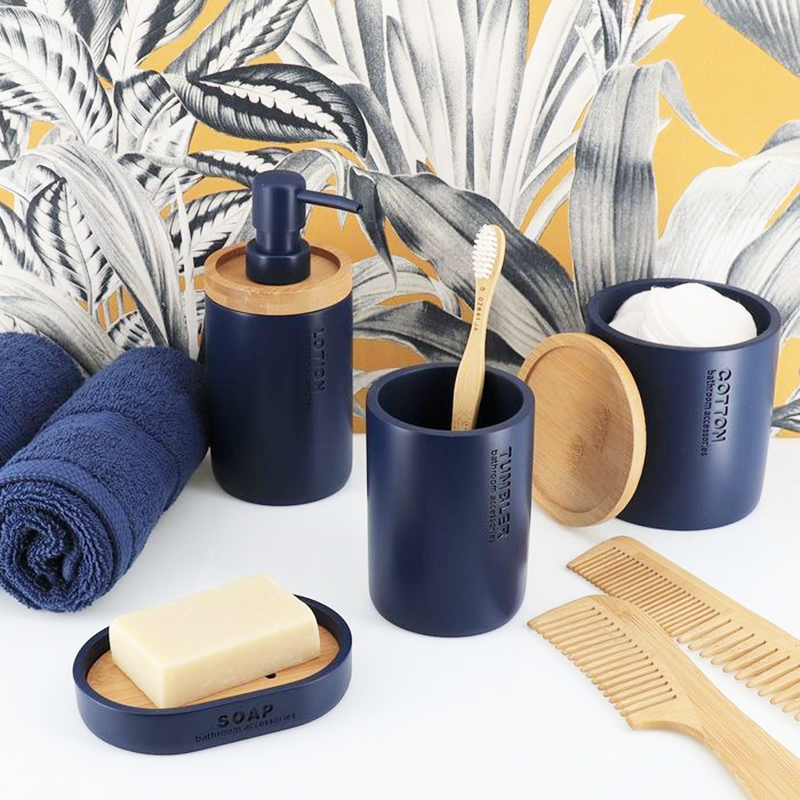Dispenser polyresin μπλε με bamboo 7,5Χ7,5Χ17 | 06.62101118