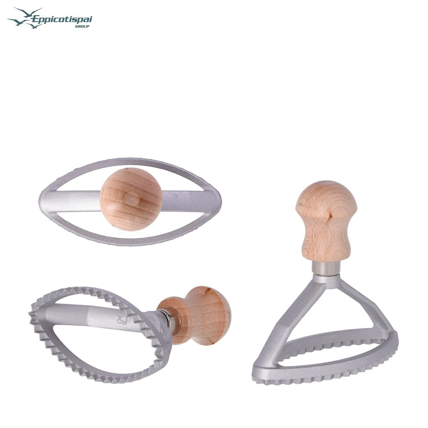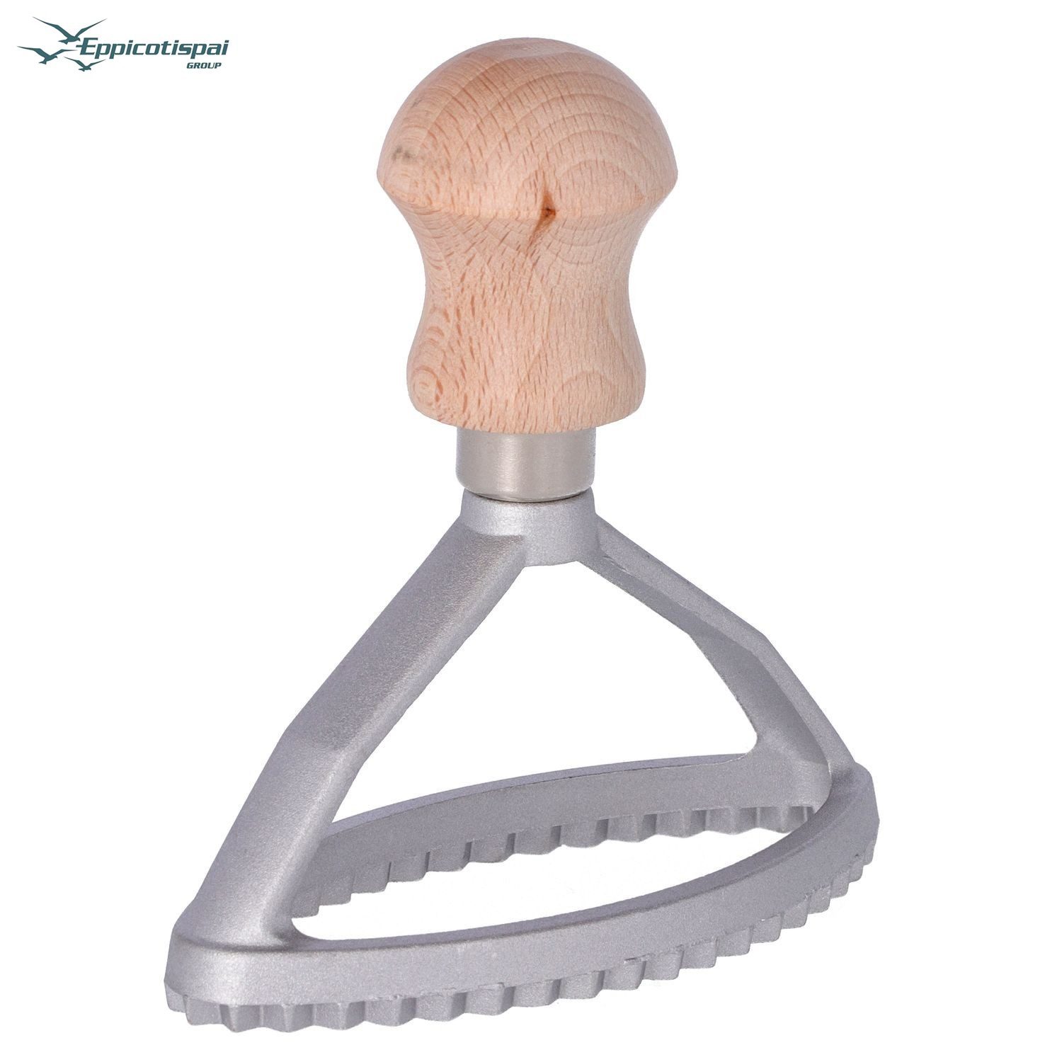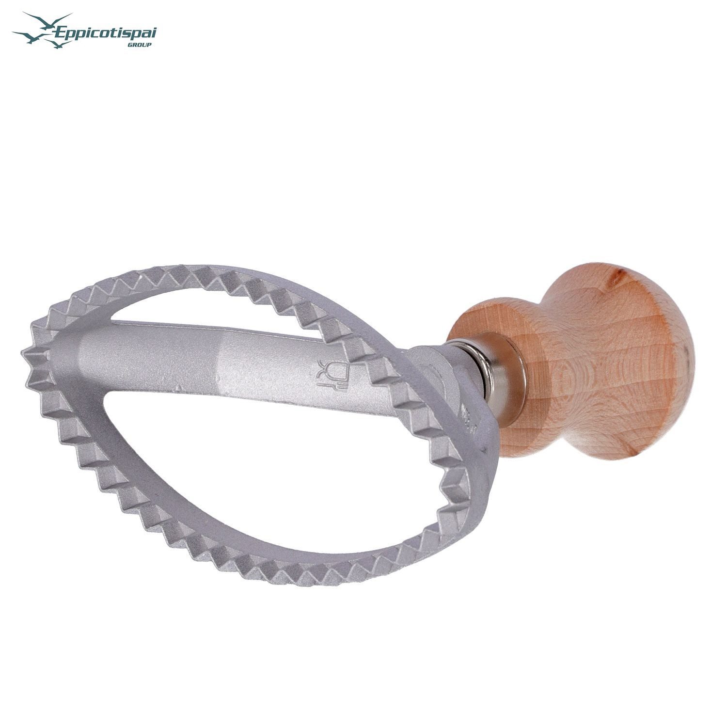 Κόφτης ραβιόλι κατασκευασμένος στην Ιταλία από χυτό αλουμίνιο με ξύλινη λαβή οξιάς, κατάλληλος για την παρασκευή ζυμαρικών αλλά και την κοπή ζύμης μπισκότων και ζαχαρόπαστας.