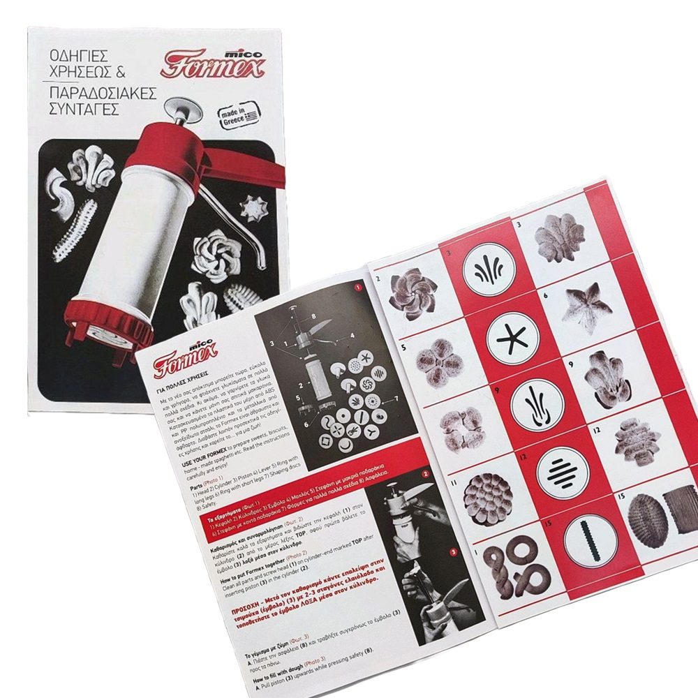 Διαθέτει 16 δίσκους για παρασκευή μπισκότων και γαρνίρισμα γλυκών, περιλαμβάνει φυλλάδιο οδηγιών χρήσης και συνταγών.