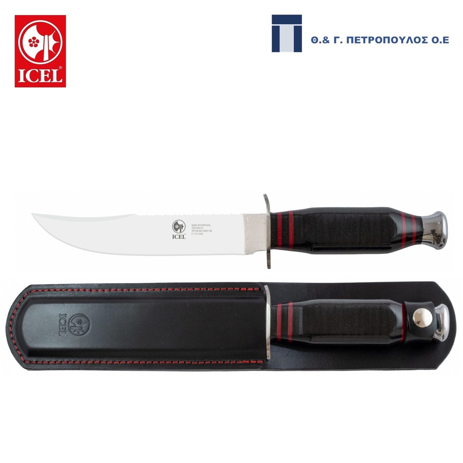 Το μαχαίρι επιβίωσης Bushcraft της ICEL είναι ευέλικτο και ακριβές, κόβει υφάσματα, σχοινιά, ξύλα και λεπτά μέταλλα κάνοντας τη ζωή στην ύπαιθρο εύκολη. Κατασκευάζεται στην Πορτογαλία με λεπίδα από ανθρακούχο ανοξείδωτο ατσάλι με χρώμιο μολυβδαίνιο και βανάδιο X50CrMoV15, είναι ακονισμένη και στις 2 πλευρές της και διαθέτει οδοντωτή ράχη, με ειδική θερμική επεξεργασία η σκληρότητα της λεπίδας φτάνει στους 57± 2 HRC. Η στιβαρή λαβή κατασκευάζεται από μαύρα δερμάτινα δαχτυλίδια και κόκκινα δαχτυλίδια Micarta εμποτισμένα με ρητίνη κάνοντας τη συμπαγή, ανθεκτική και αδιάβροχη, διαθέτει προστατευτικό ασφαλείας από ανοξείδωτο ατσάλι για την αποφυγή τραυματισμών και τελείωμα από αλουμινένια γλωττίδα με ορειχάλκινο παξιμάδι.