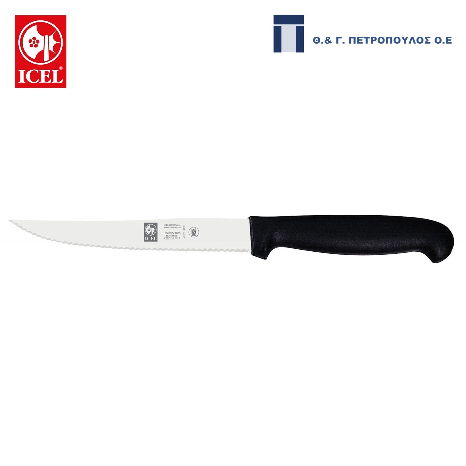 Icel Pratica Μαχαίρι Σπαθακι Οδοντωτο 15Εκ. Μαύρη Λαβή