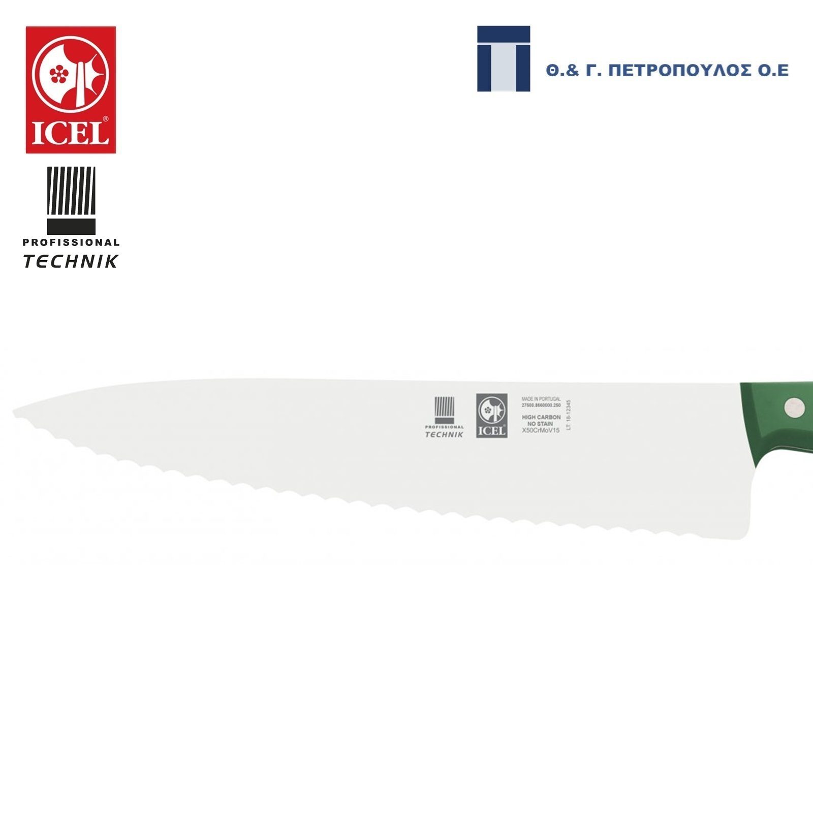 Icel Technik Μαχαιρι Chef Οδοντωτο 25Εκ. Πρασινη Λαβη | 275.8660.25