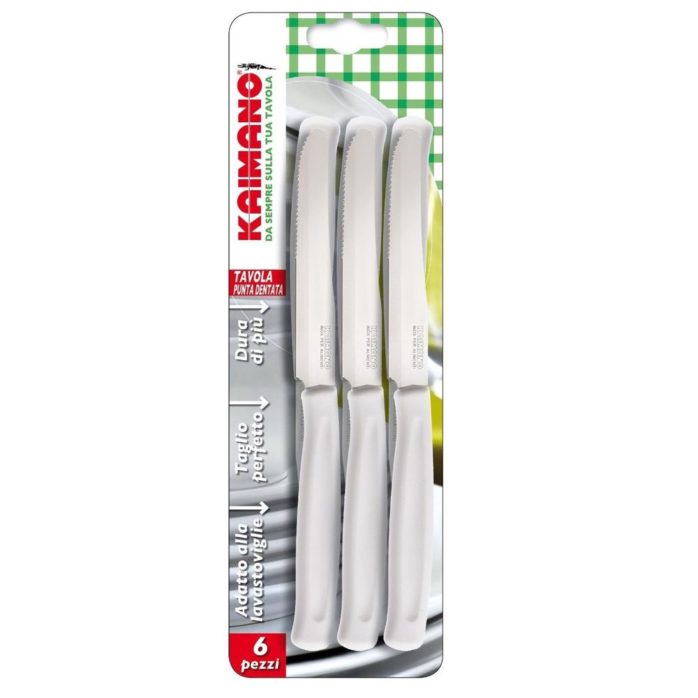 Kaimano Dinamik Tavola Σετ 6 Μαχαίρια Τραπεζιου Μισο-Οδοντωτα 11Εκ. Λευκο – 214