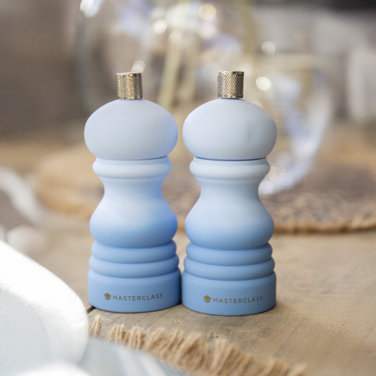 Οι μύλοι αλατιού & πιπεριού της MasterClass διαθέτουν κεραμικό μηχανισμό για την καλύτερη δυνατή άλεση και την αποφυγή διάβρωσης, είναι κατασκευασμένοι από υψηλής ποιότητας ανθεκτικό πλαστικό με υφή “soft touch” σε απόχρωση δύο τόνων “ombre”, για ασφαλή και πιστοποιημένη επαφή με τα τρόφιμα. Περιλαμβάνουν 2 βιδωτές ενδείξεις για την επιλογή της χρήσης τους, “S” αλάτι ή “P” πιπέρι και διατίθονται με εγγύηση 5 ετών.