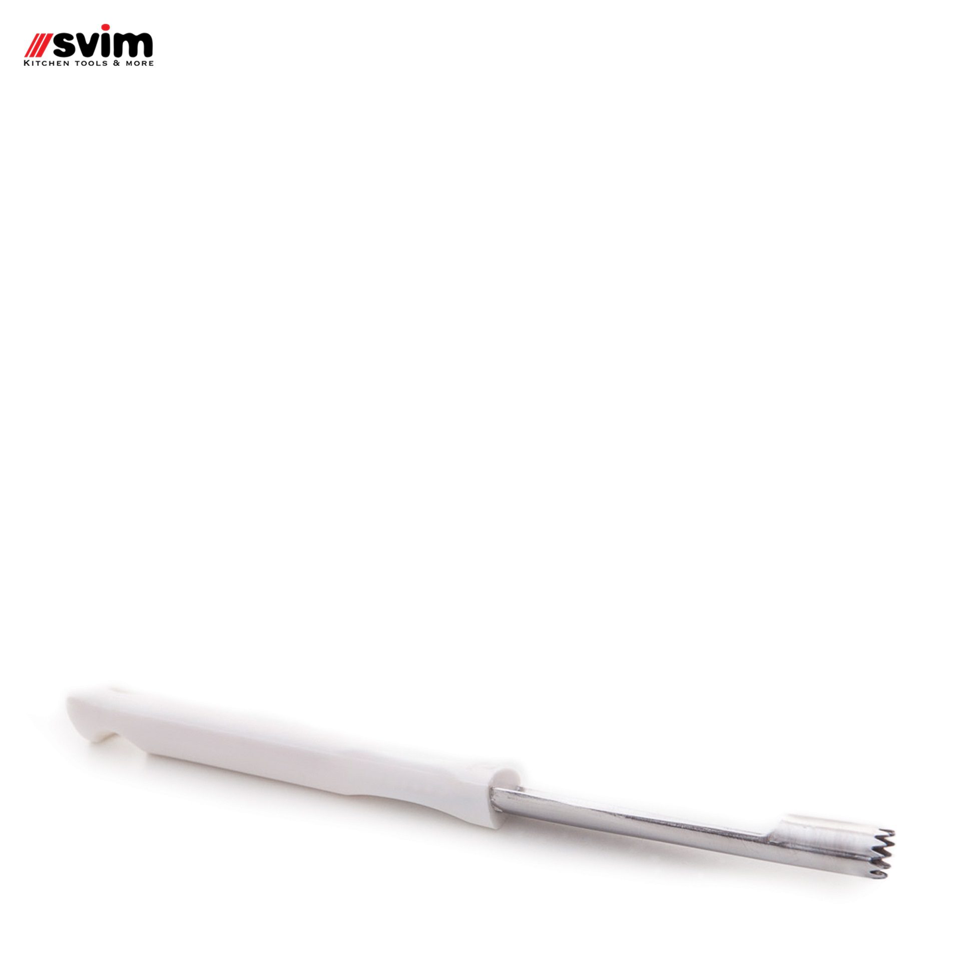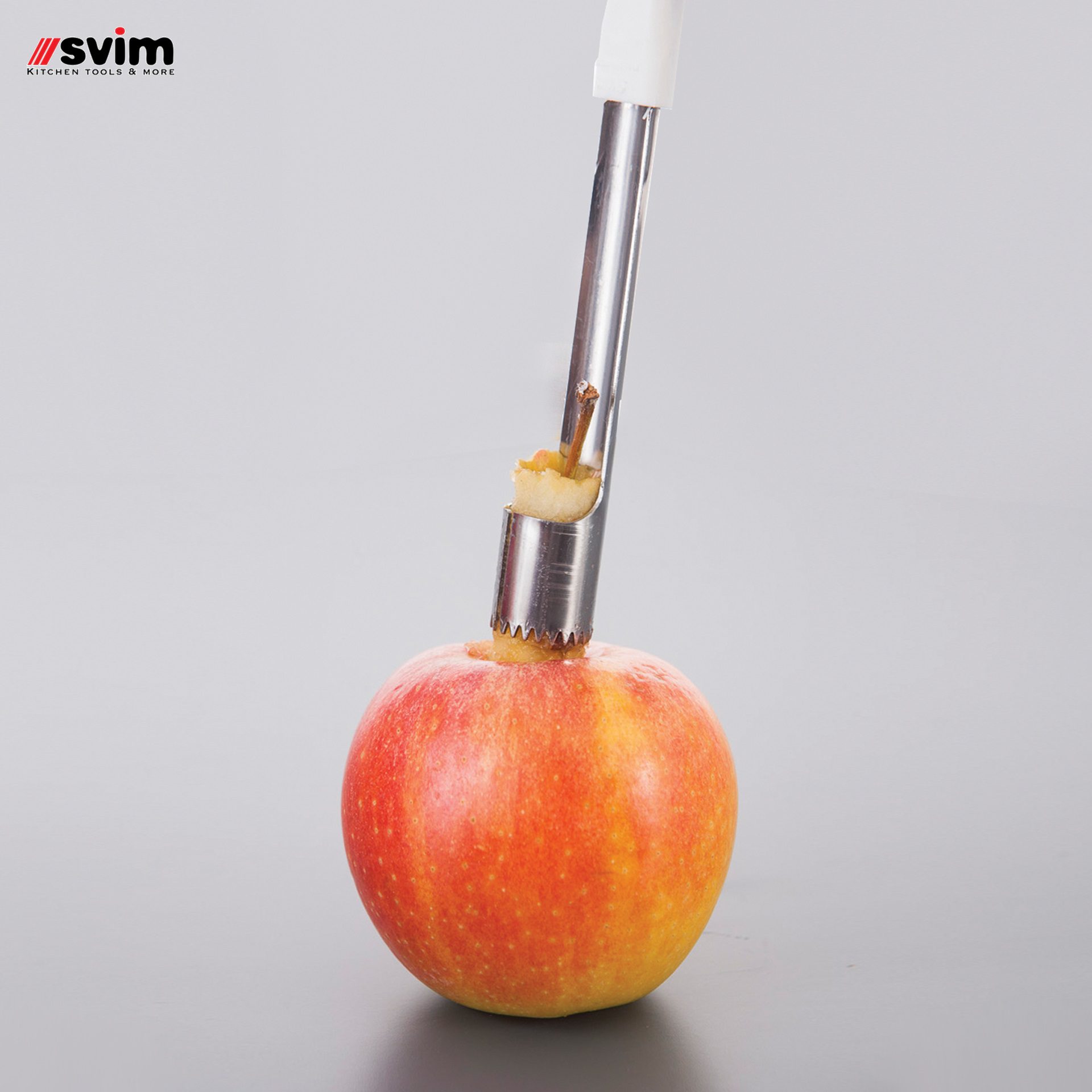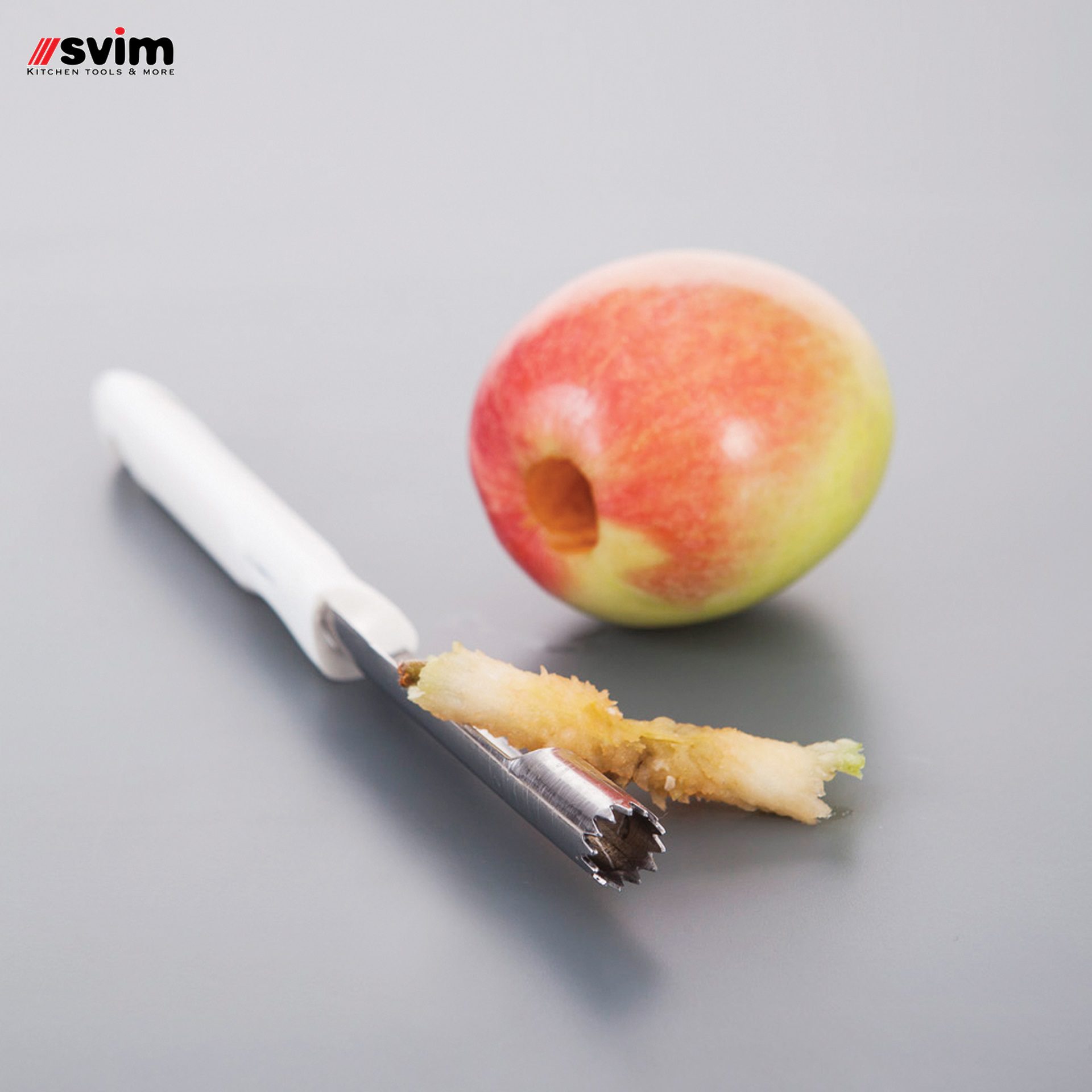 Εργαλείο με λάμα 10 εκ. από ανοξείδωτο ατσάλι που καταλήγει σε δαχτυλίδι με αιχμηρούς οδοντωτούς κοπτήρες και αφαιρεί τον πυρήνα από το φιρίκι, ιδανικό για συνταγές που απαιτούν ακέραιο το φρούτο, διαθέτει πρακτική λαβή από πλαστικό υψηλής ποιότητας. Πλένεται με ασφάλεια στο πλυντήριο πιάτων.