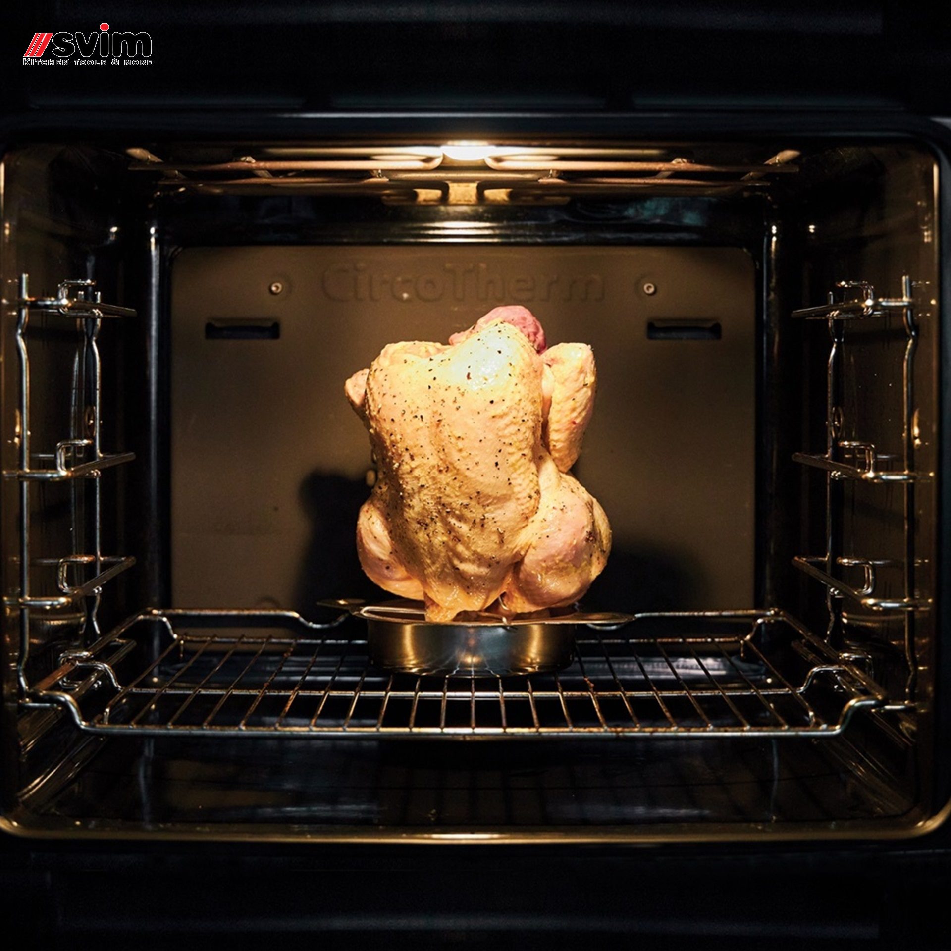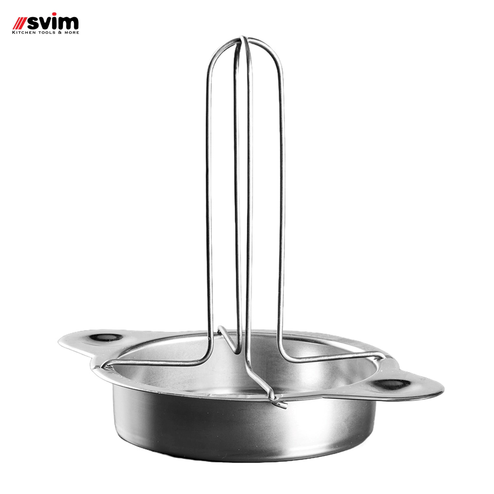 Σκεύος για το ψήσιμο ολόκληρου κοτόπουλου στον φούρνο, κατασκευασμένο εξ ολοκλήρου από ανοξείδωτο ατσάλι 18/10, αποτελείται από δύο αποσπώμενους ορθοστάτες που στηρίζονται σε ανοξείδωτο δοχείο διαμέτρου 15εκ. με πλαϊνές λαβές. Το κοτόπουλο τοποθετείται στους ορθοστάτες, οι οποίοι δημιουργούν κενό στο εσωτερικό του που επιτρέπει την είσοδο της θερμότητας, ψήνεται ομοιόμορφα και τα λίπη συλλέγονται στο δοχείο, με αποτέλεσμα ζουμερό κοτόπουλο με τραγανή κρούστα. Πλένεται με ασφάλεια στο πλυντήριο πιάτων.