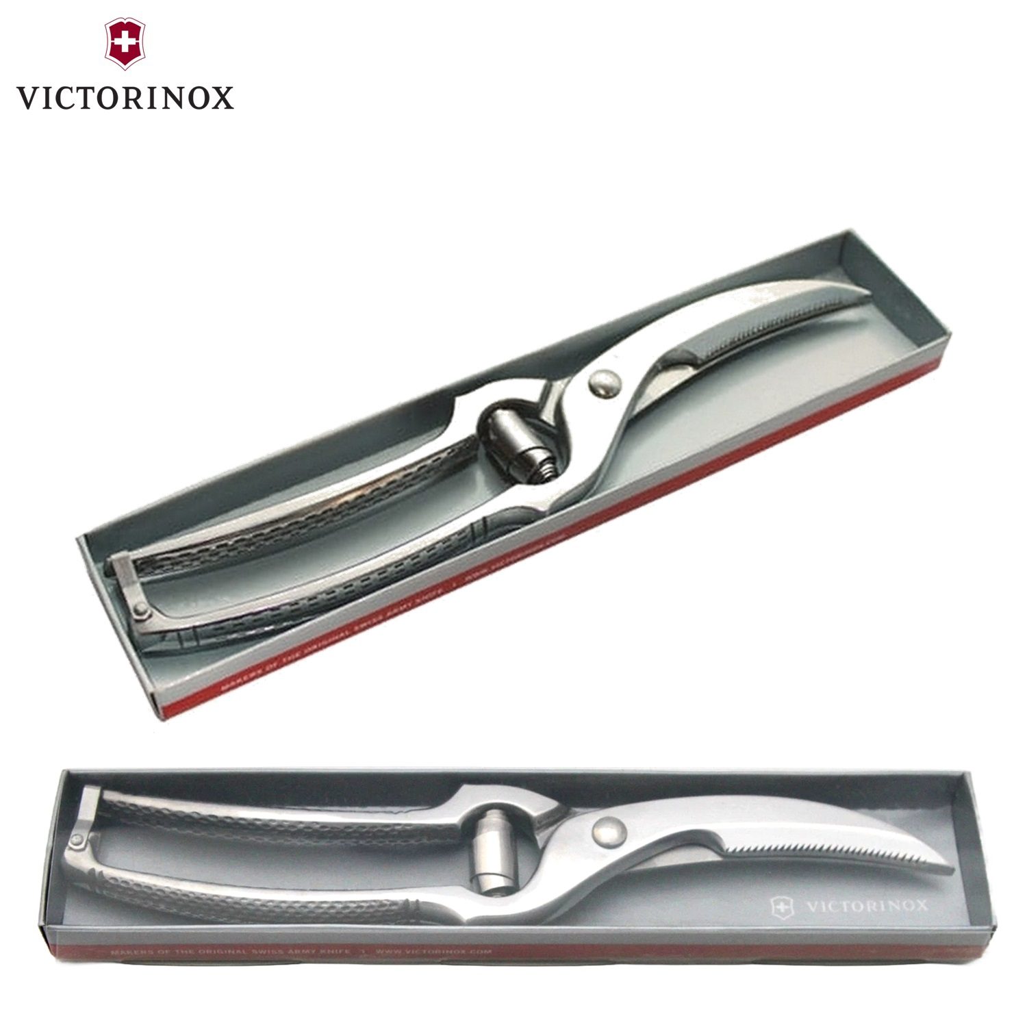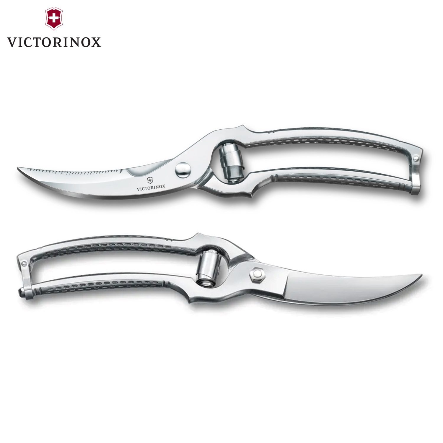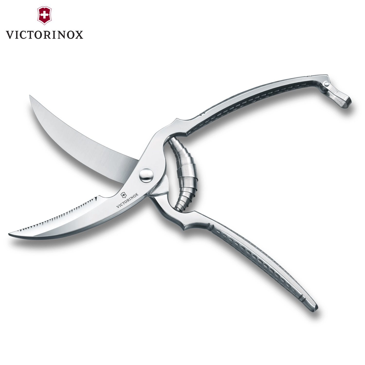 Ψαλίδι πουλερικών κατασκευασμένο στην Ιταλία από την Victorinox από σφυρήλατο ανοξείδωτο ατσάλι, οι κυρτές του λεπίδες με την μία να είναι οδοντωτή με ενσωματωμένο θραυστήρα οστών, αρθρώσεων και χόνδρων κάνουν γρήγορη την εργασία με πουλερικά ή ακόμα και με χοιρινό κρέας. Διαθέτει δυνατό μηχανισμό επαναφοράς με ελατήριο για εύκολο χειρισμό, ανάγλυφη αντιολισθητική λαβή για χρήση τόσο από αριστερόχειρες όσο και από δεξιόχειρες, κλείδωμα ασφαλείας για την αποθήκευση και συνοδεύεται από εγγύηση εφ’ όρου ζωής.